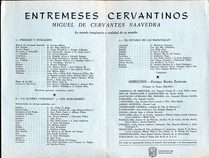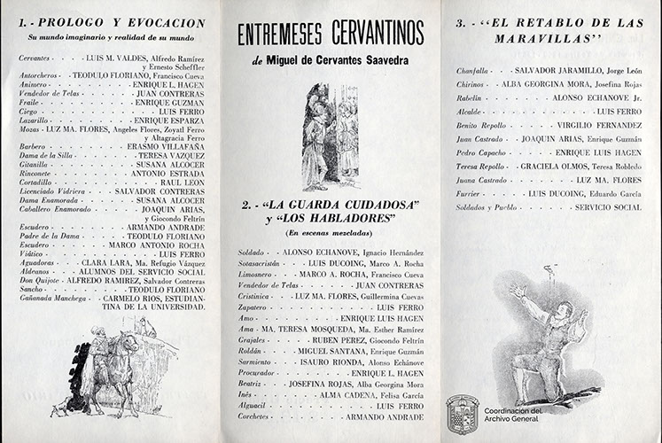 “Sólo queríamos hacer desfiguros”, nos platicaba Luis Pablo Castro “El palillo”, uno de los fundadores de los Entremeses Cervantinos y un gran amigo. Continuaba: “Nunca nos imaginamos que iba a llegar a tanto, ni Armando (Olivares), Eugenio (Trueba ) Enrique (Ruelas), Benny (Smith), ni todos los demás. Eso sí, pusimos, cada uno, con gran entusiasmo todo lo que podíamos”.